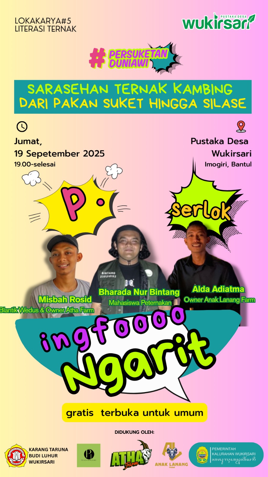 Dalam lokakarya ini, akan diadakan ngopi bareng kelompok ternak Watu Bunder untuk membahas #persuketanduniawi serta masa depan dunia peternakan di Wukirsari.